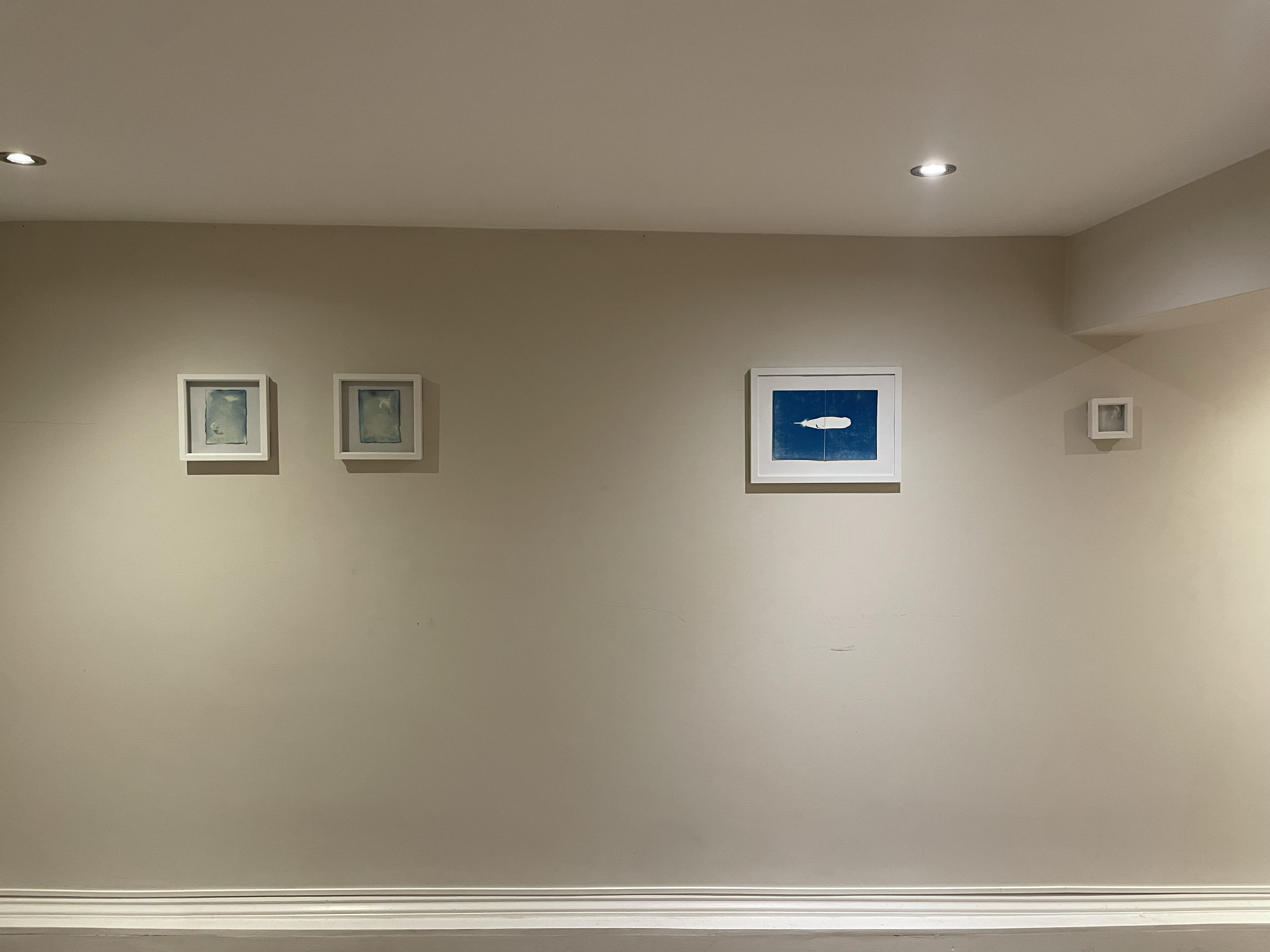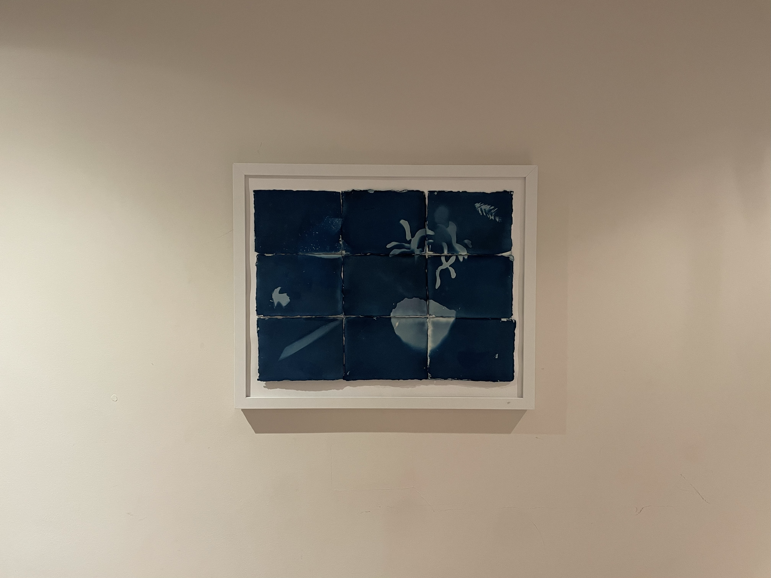 Other works include cyanotypes, charcoal drawings and printed photographs.